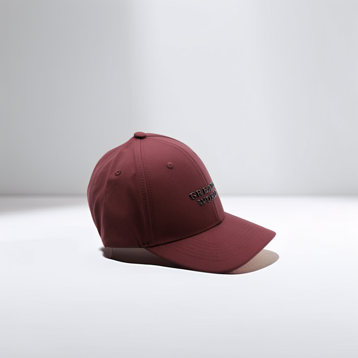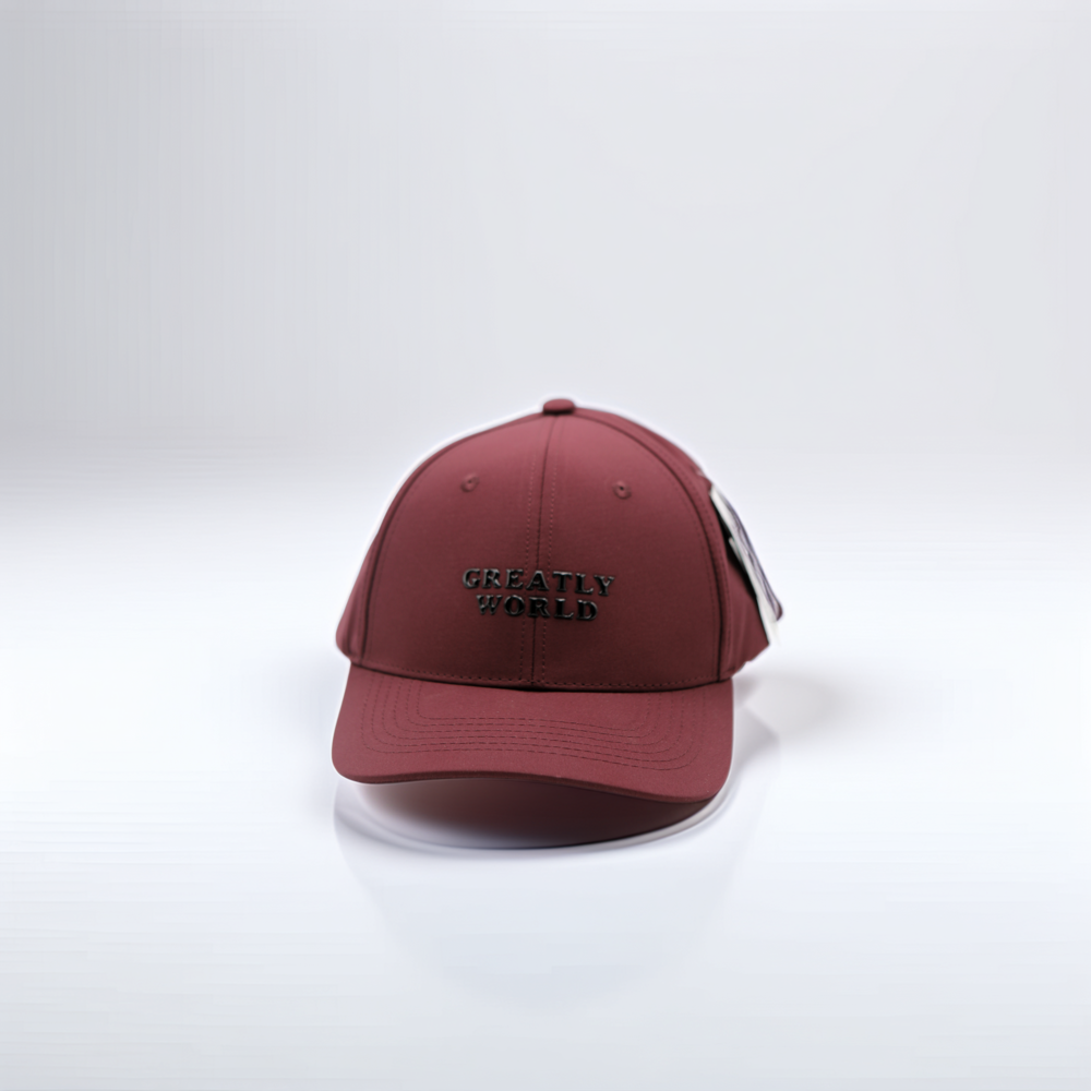 Casquette bordeaux Greatly World au design moderne avec logo en relief, parfaite pour un style urbain élégant.